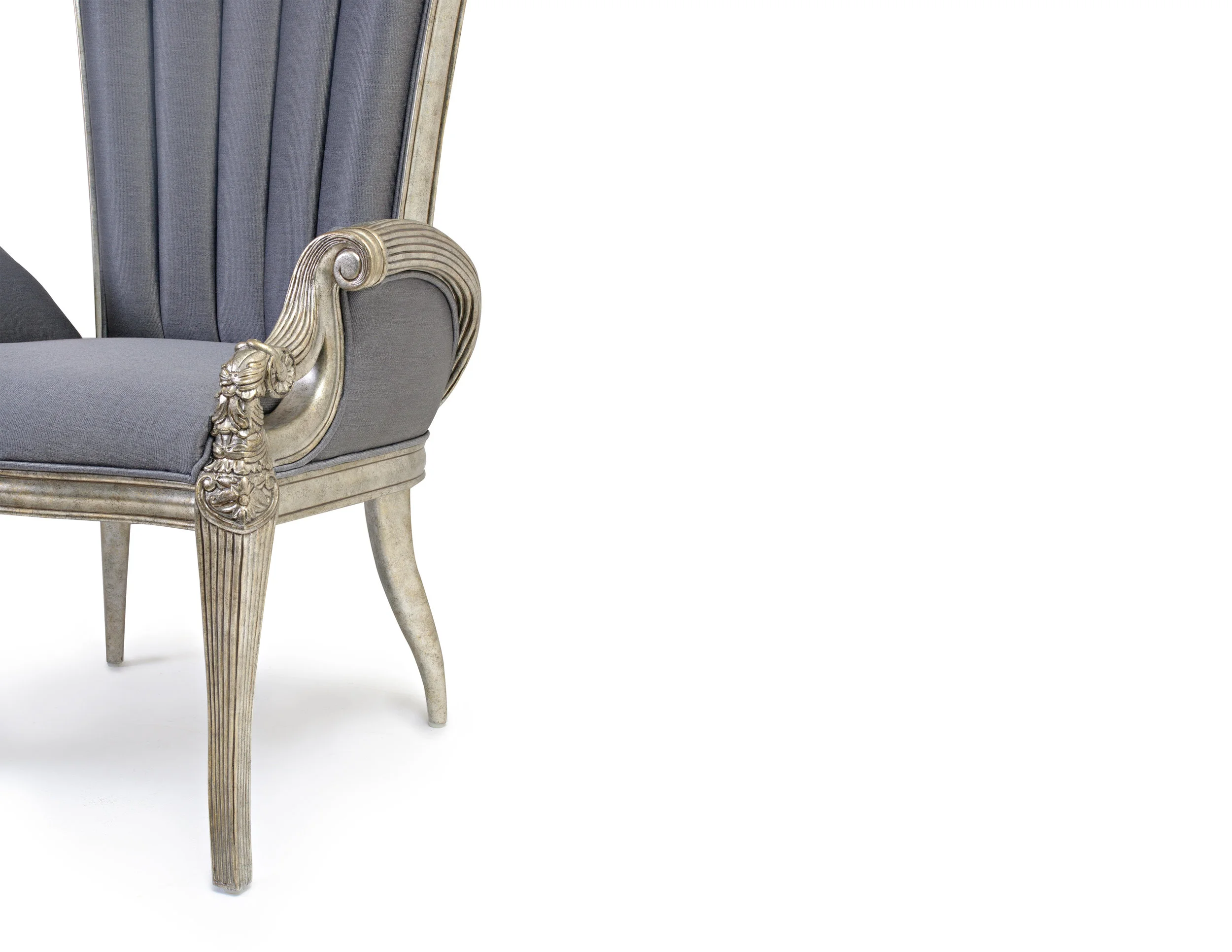 Finish Fully Upholstered with Wood in Antique Silver Finish